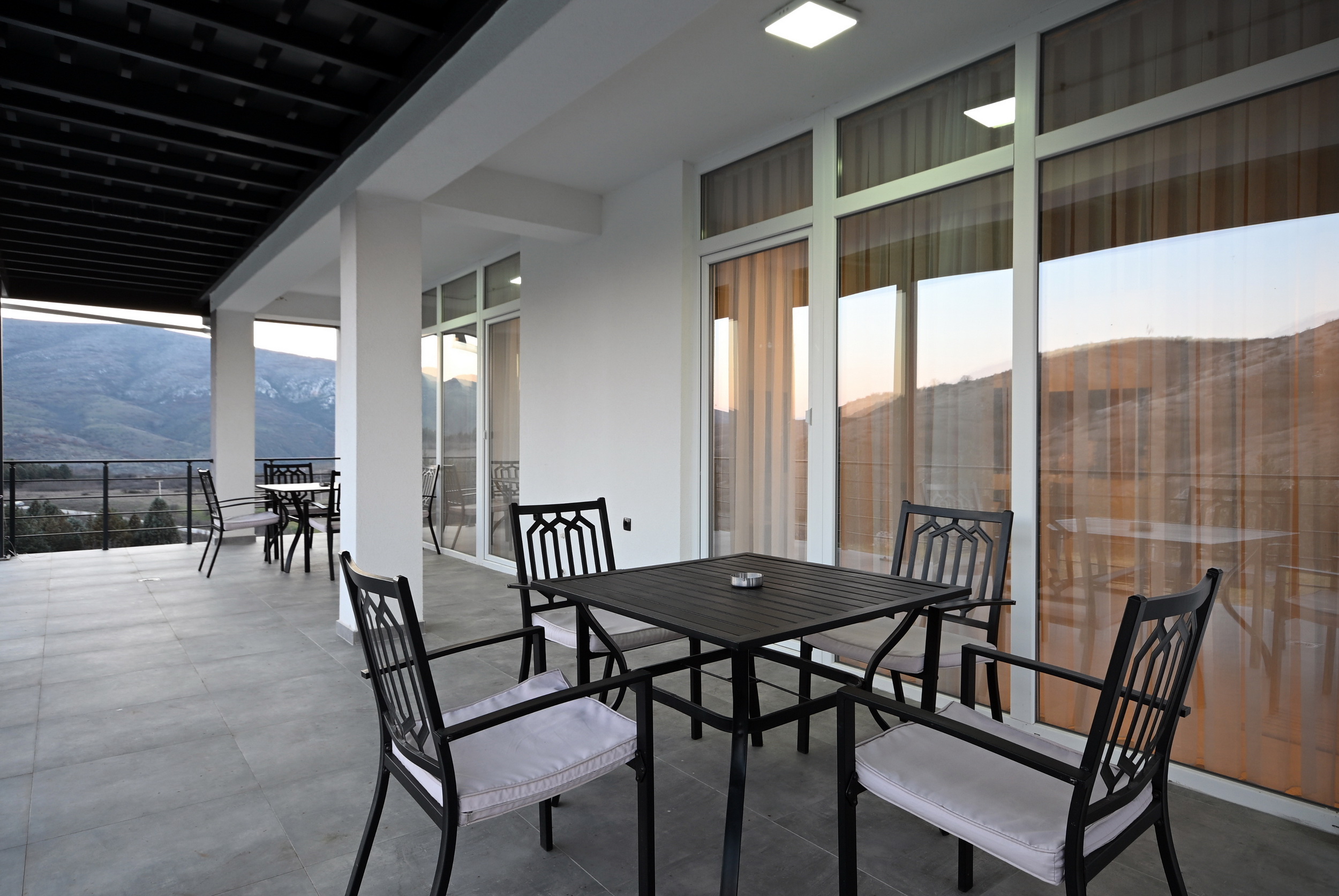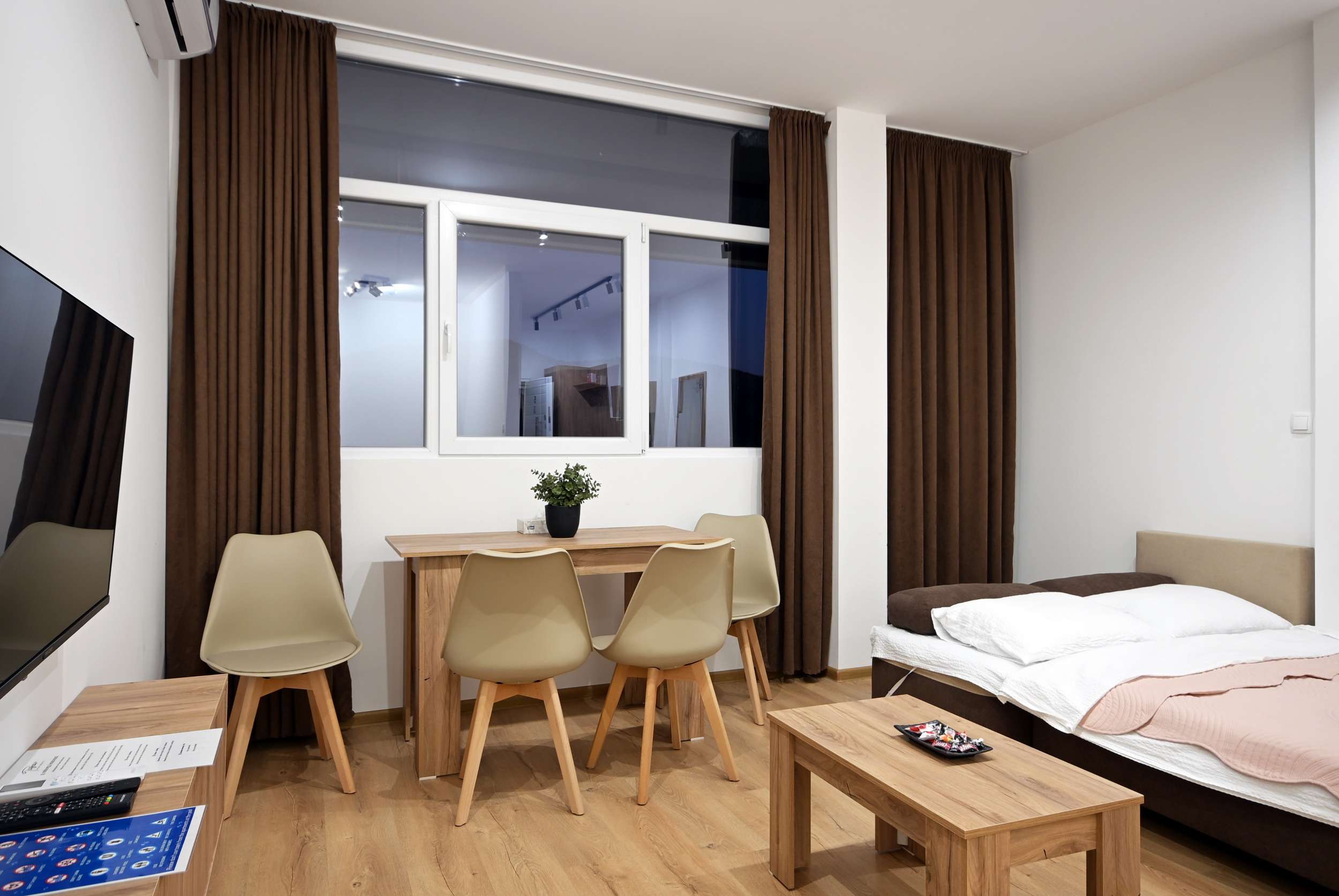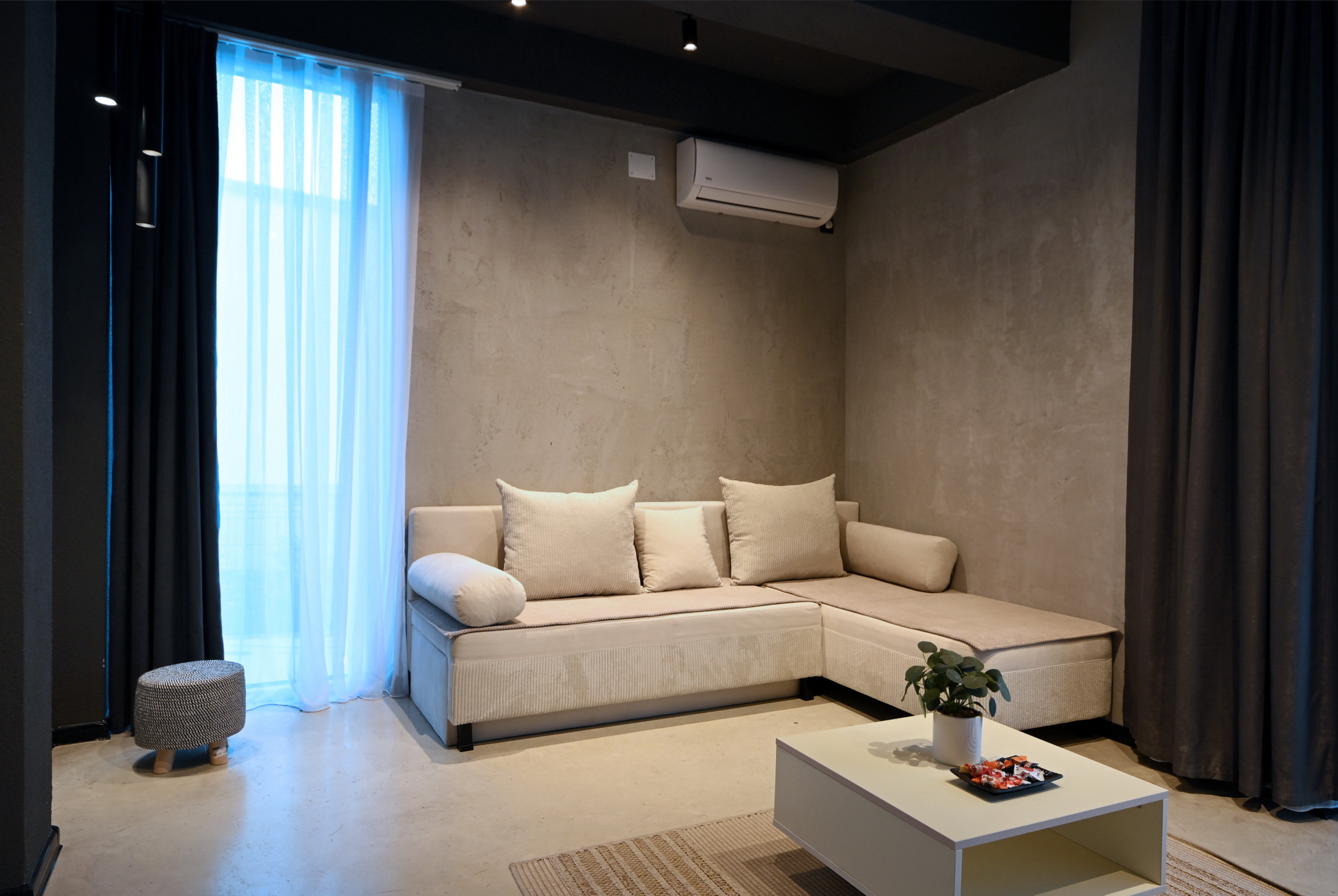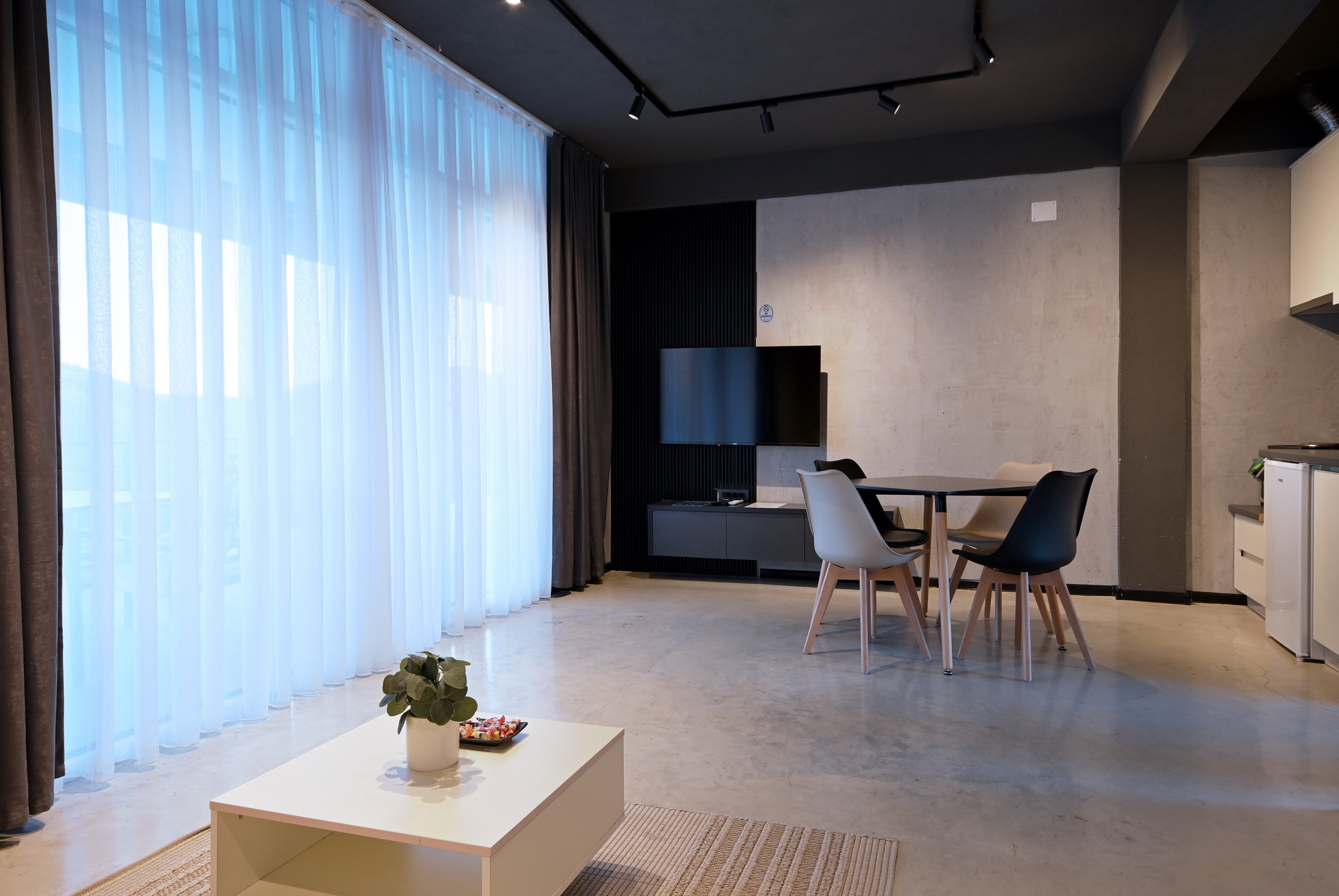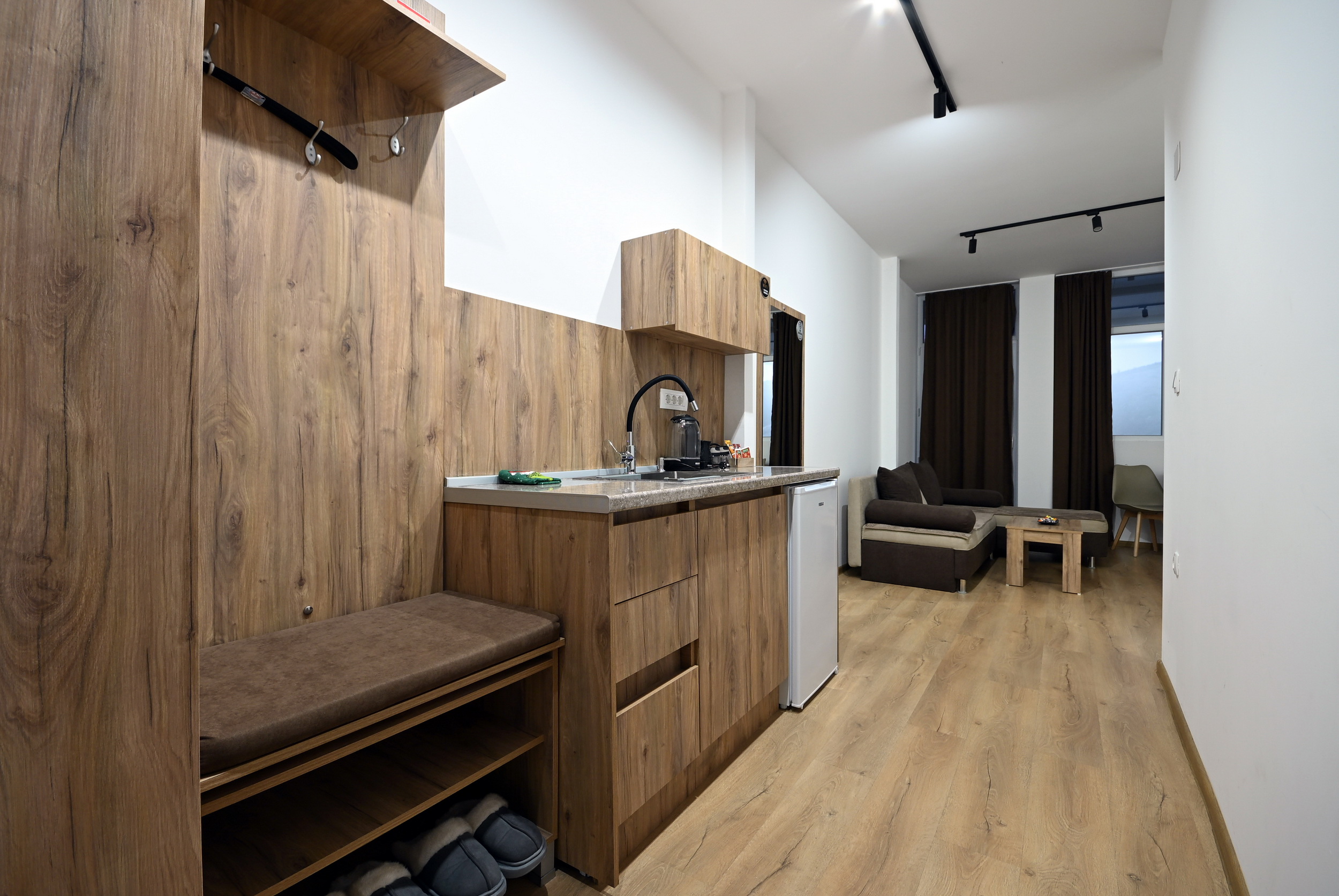 This modern apartment features a comfortable living room and a separate bedroom, accommodating up to 4 guests. It includes one king-size bed in the bedroom and a sofa bed in the living room. Enjoy a private terrace with breathtaking lake and mountain views — the perfect spot for morning coffee or relaxing at sunset. The apartment is fully equipped with a private bathroom, kitchenette, air conditioning, free Wi-Fi, and a flat-screen LED TV. Bed linen and towels are provided for your convenience. Ideal for guests looking for comfort, nature, and an unforgettable stay.